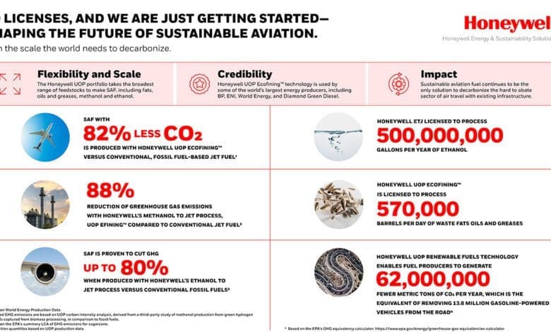 Honeywell’s Ecofining process, developed in collaboration with Eni SpA, stands out as a capital- and cost-effective solution for converting waste fats, oils, and greases into renewable diesel and SAF. By blending these alternatives with conventional jet fuel, SAF usage can potentially reduce greenhouse gas (GHG) emissions by up to 80%, making a substantial contribution to the global effort to combat climate change. Ecofining has been successfully utilized since 2013 for renewable diesel and since 2016 for SAF production, showcasing its efficacy in reducing carbon dioxide (CO2) emissions, particularly in the aviation sector.