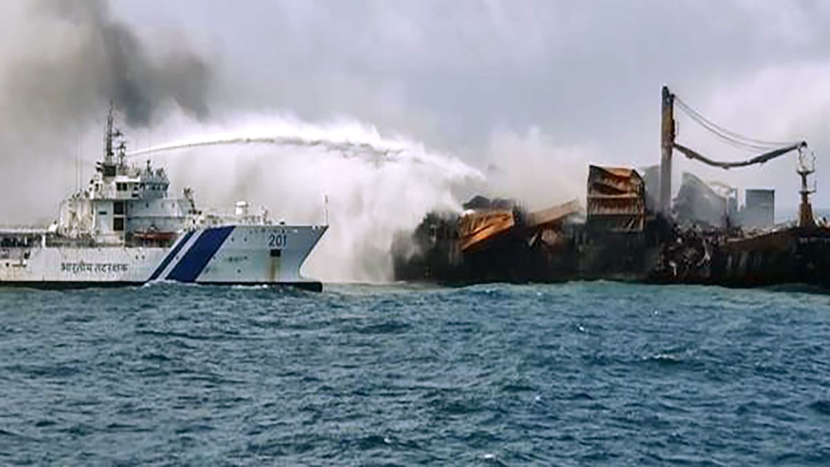 Indian Coast Guard’s Fast Patrol vessels Ameya and Abheek loaded with aqueous film forming foam concentrate (AFFF), Dry Chemical Powder and Oil Spill Dispersants are in close vicinity to render assistance as required. So far no oil spill has been reported. Samudra Paheredar Ship is also present at the scene of the incident and was actively involved in the fire fighting operations. It is equipped with Ocean Boom, 4 Oil Skimmers and Oil Spill Dispersant to handle pollution response in event of an oil slick.