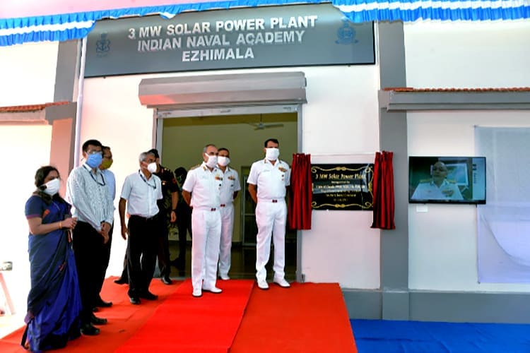 Vice Admiral Anil Kumar Chawla, Commanding-in-Chief, Southern Naval Command commissioned a 3 MW Solar Power Plant at Indian Naval Academy (INA), Kerala on 22 July 2020, via virtual conferencing. This is in line with the Government of India’s initiative of ‘National Solar Mission’ to achieve 100 GW of solar power by 2022. The solar plant is the largest in the Indian Navy and has an estimated life of 25 years. All components have been indigenously sourced, including 9,180 highly efficient monocrystalline solar panels employing the latest technology. The project has been executed by Kerala State Electronics Development Corporation Ltd.