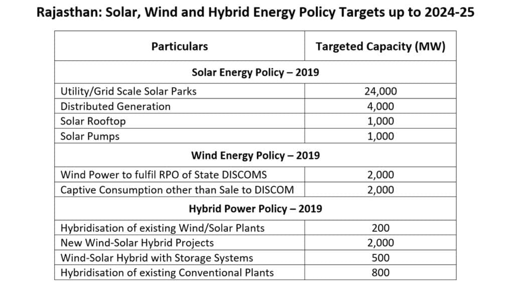 As per the Solar Energy Policy 2019, Rajasthan is aiming to achieve a target of 30 GW of solar power by FY 2024-2025. Under the policy, 24 GW will be generated from utility or grid scale solar parks, distributed generation is expected to account for 4 GW, total 1 GW will be from solar rooftop, the remaining 1 GW will make up by the solar pumps. The state government is also planning to develop 33 headquarters in the districts as ‘Green Energy Cities’ within next five year by installing solar rooftop systems of 300 MW.