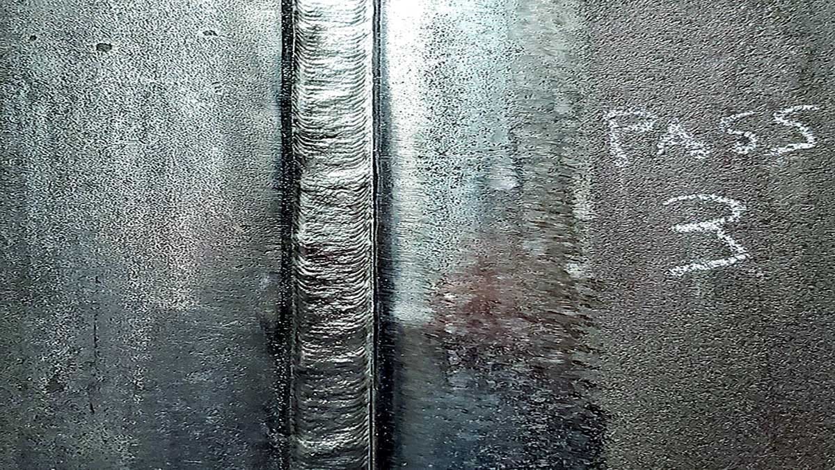 During development, ESAB engineers used a weld data analysis system to prove that the wire welds with excellent arc stability and amperage control. Lab tests in the 3G position showed a deposition rate of 5.25 lbs/hr (2.4 kg/hr) using a 0.045-in. (1.2 mm) wire. The slag released easily to reduce risk of slag inclusions and lower-post weld cleaning time and costs.