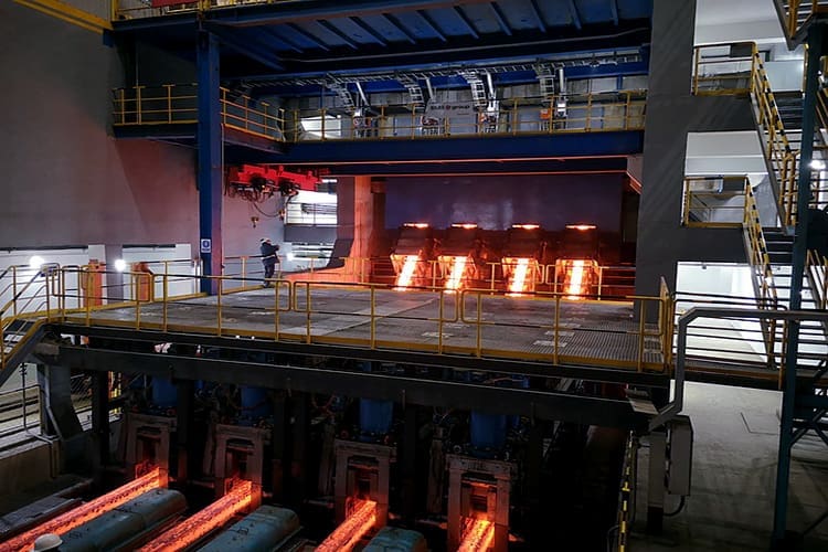 The four-strand continuous casting machine – having a nominal radius of 12 meters – is designed to cast two bloom section sizes. Currently in operation is the 255 x 300 millimetre format. Commissioning of the second bloom size – 330 x 420 millimetres – is planned for the end of 2020. High-carbon grades, such as bearing and spring steels, and the full range of steel grades to serve the automotive industry represent the majority of the production. This product portfolio provides NISCO greater production flexibility and enhanced responsiveness to the market demand.
