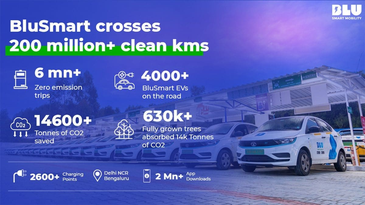 With a commitment to reduce carbon emissions, BluSmart EVs have successfully saved over 14,600 tonnes of CO2, equivalent to the positive impact of more than 6,30,000 fully grown trees actively absorbing CO2 within a year.