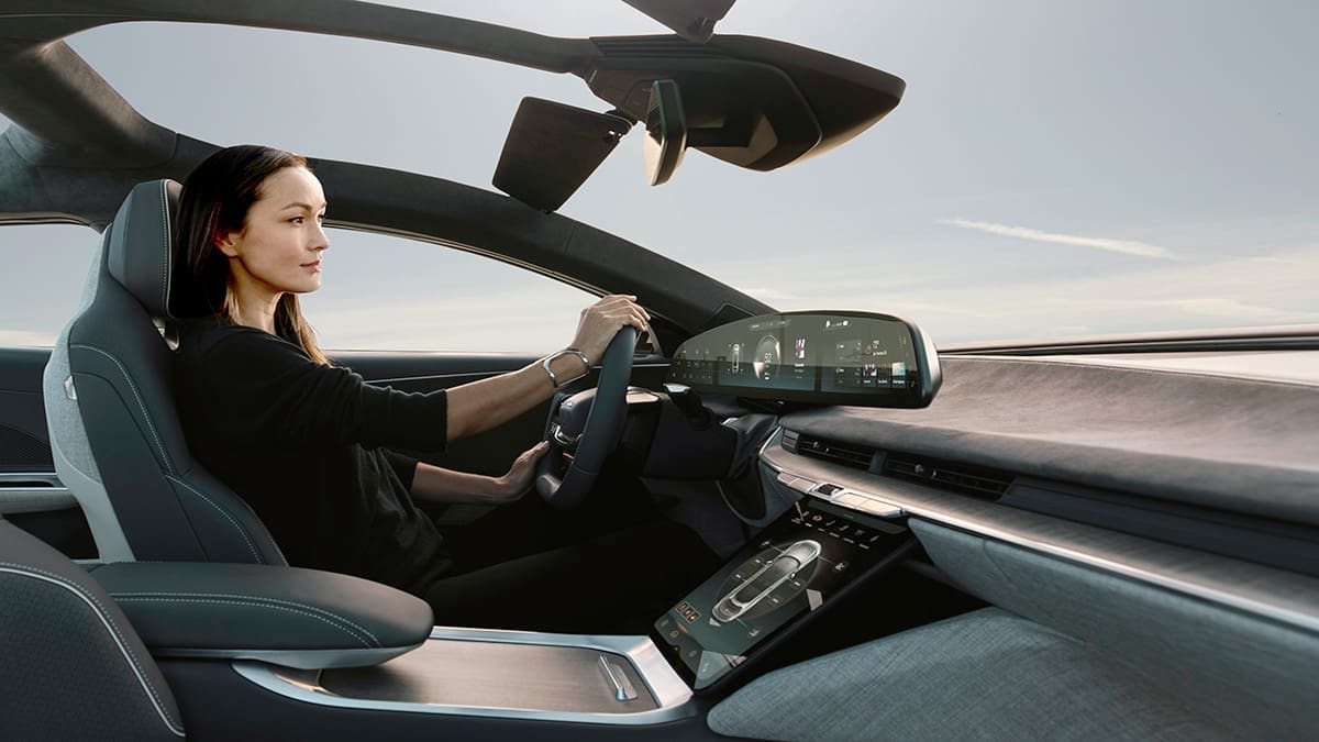 The interior of the Lucid Air reflects a revolution in how next-generation free-form displays are elegantly integrated into the design architecture of the cabin, providing a beautiful and seamless way of interacting with the vehicle software and human-centric user interface. In front of the driver is a 34-inch curved Glass Cockpit 5K display that “floats” above the dashboard, contributing to the light and airy feel of the interior. In addition, a retractable central Pilot Panel sits in finger-tip reach of the driver and passenger for deeper control of the vehicle’s systems and functions.